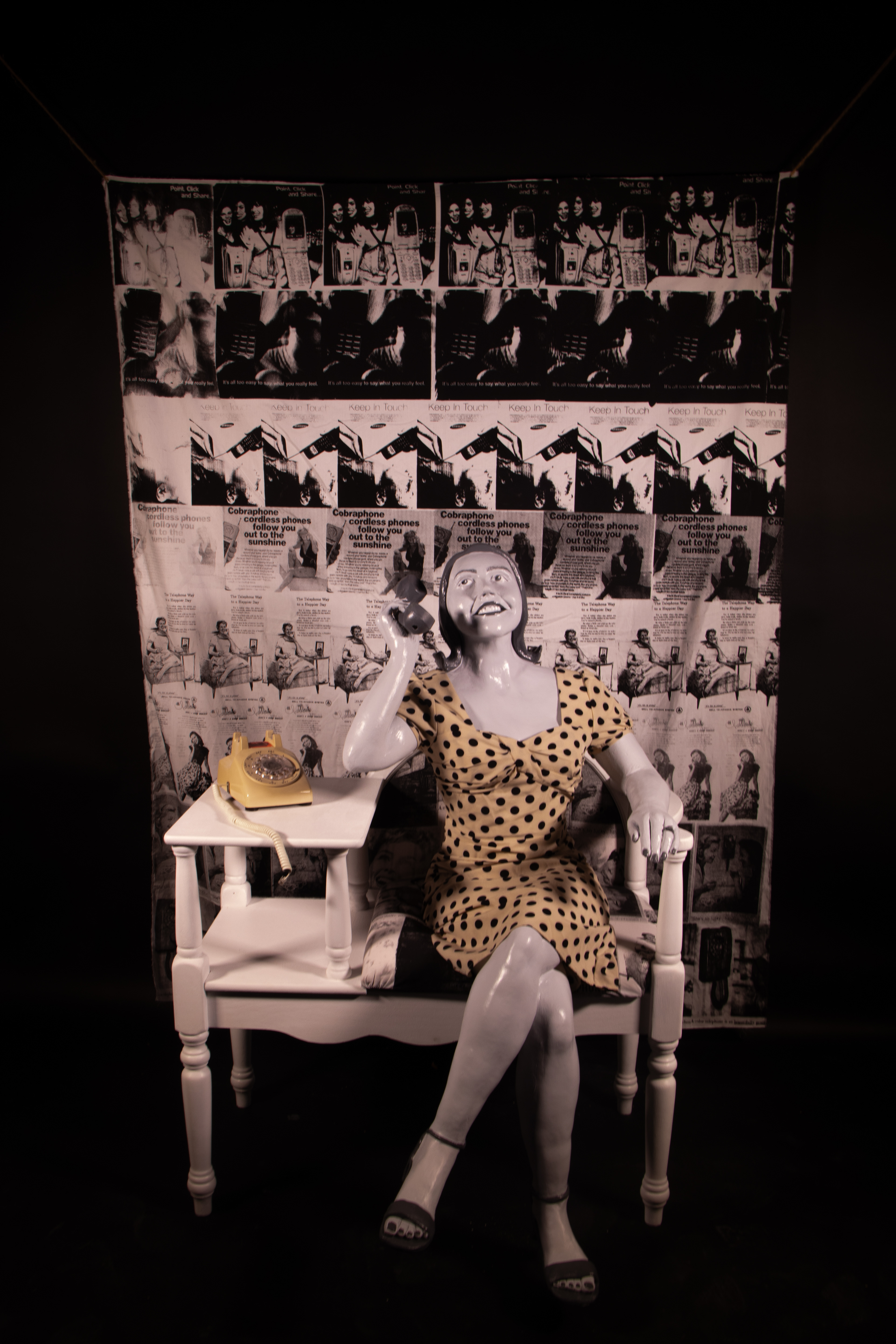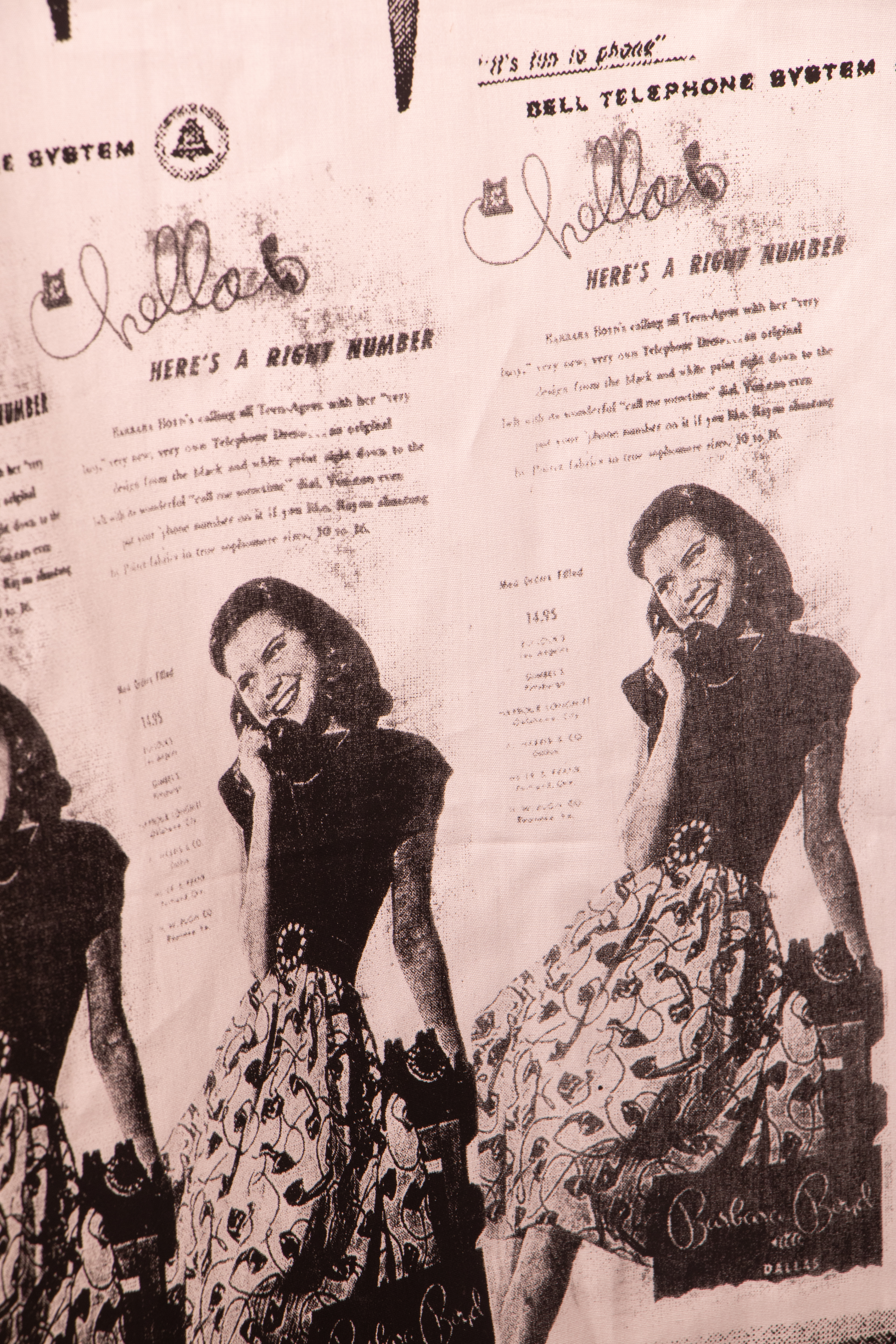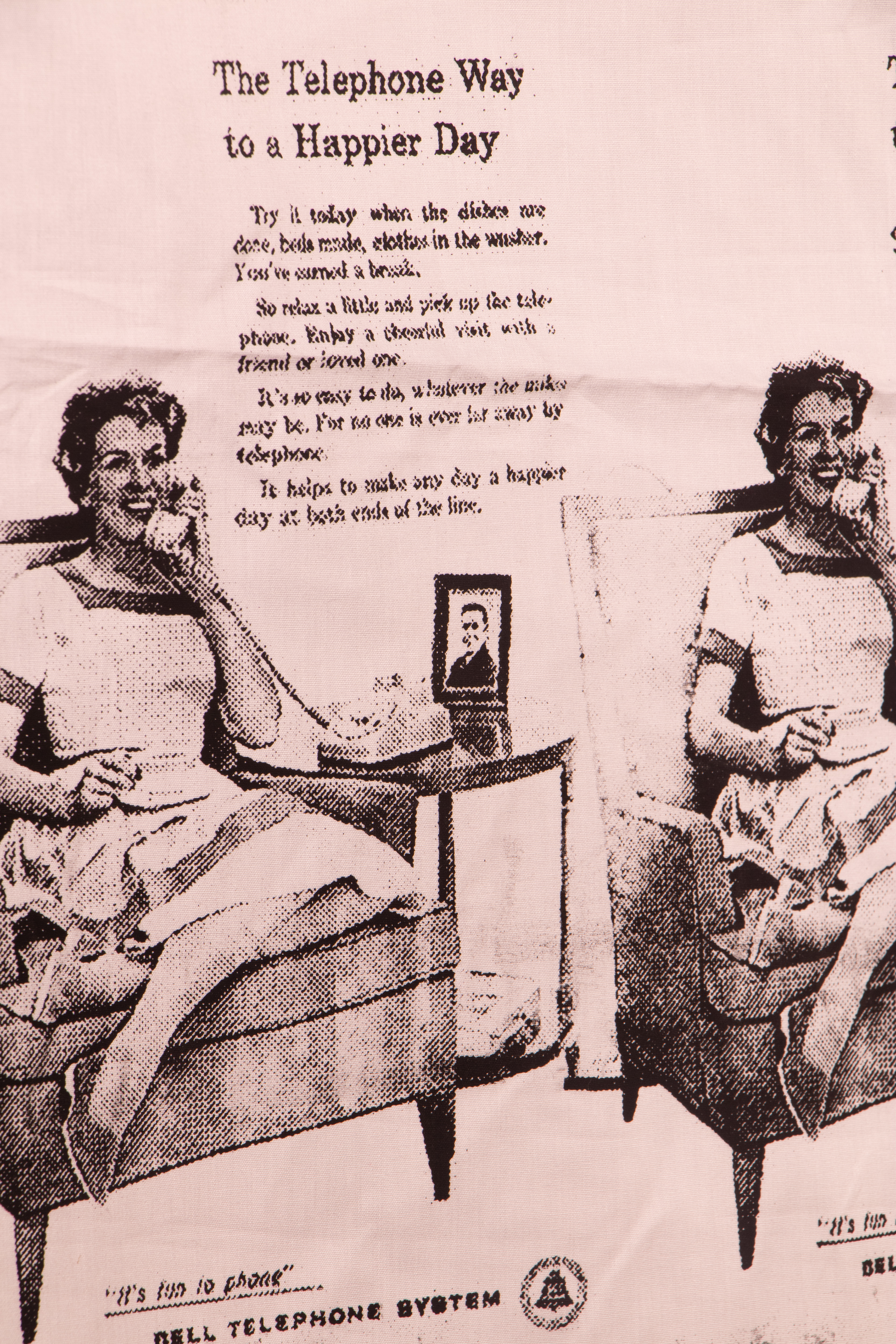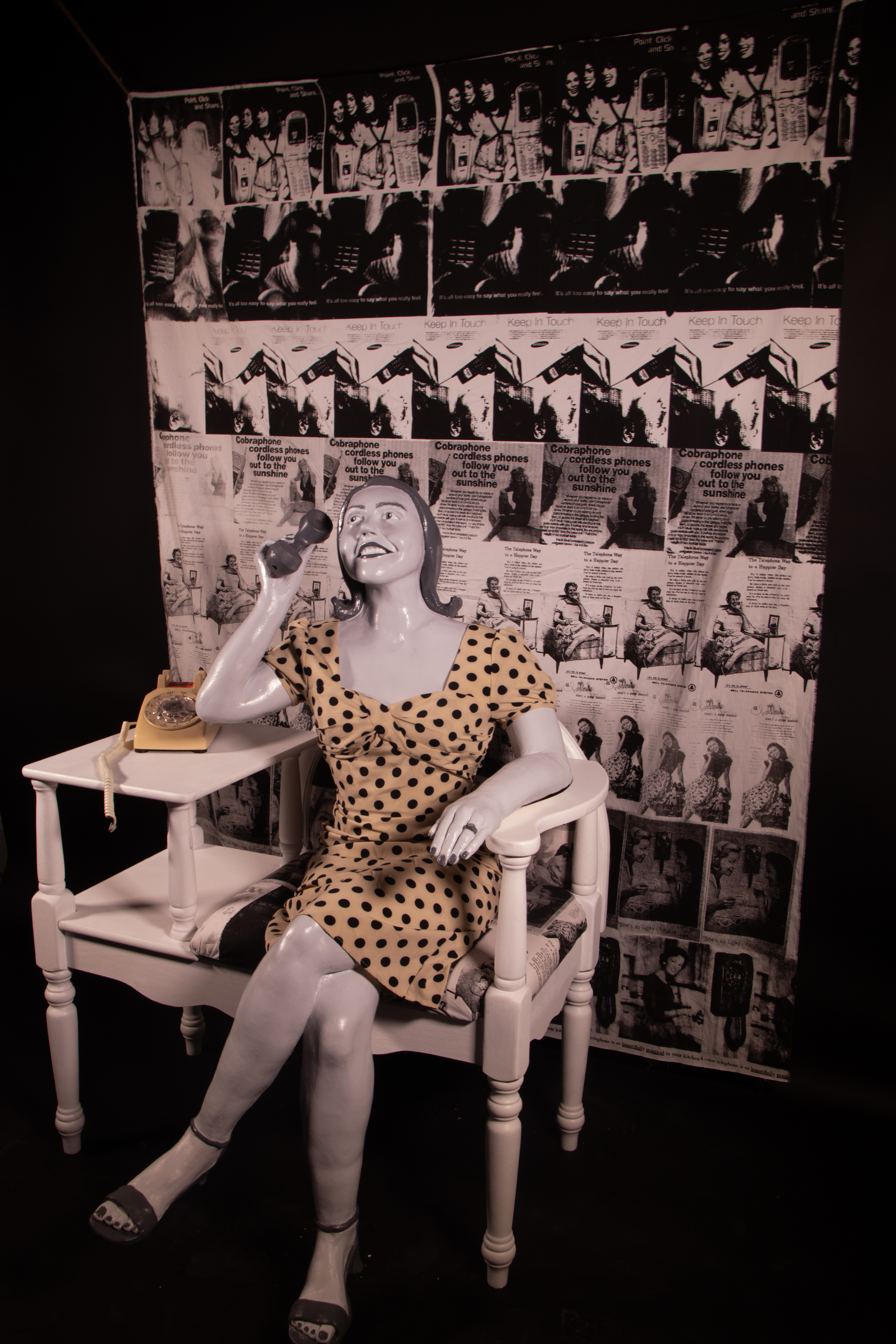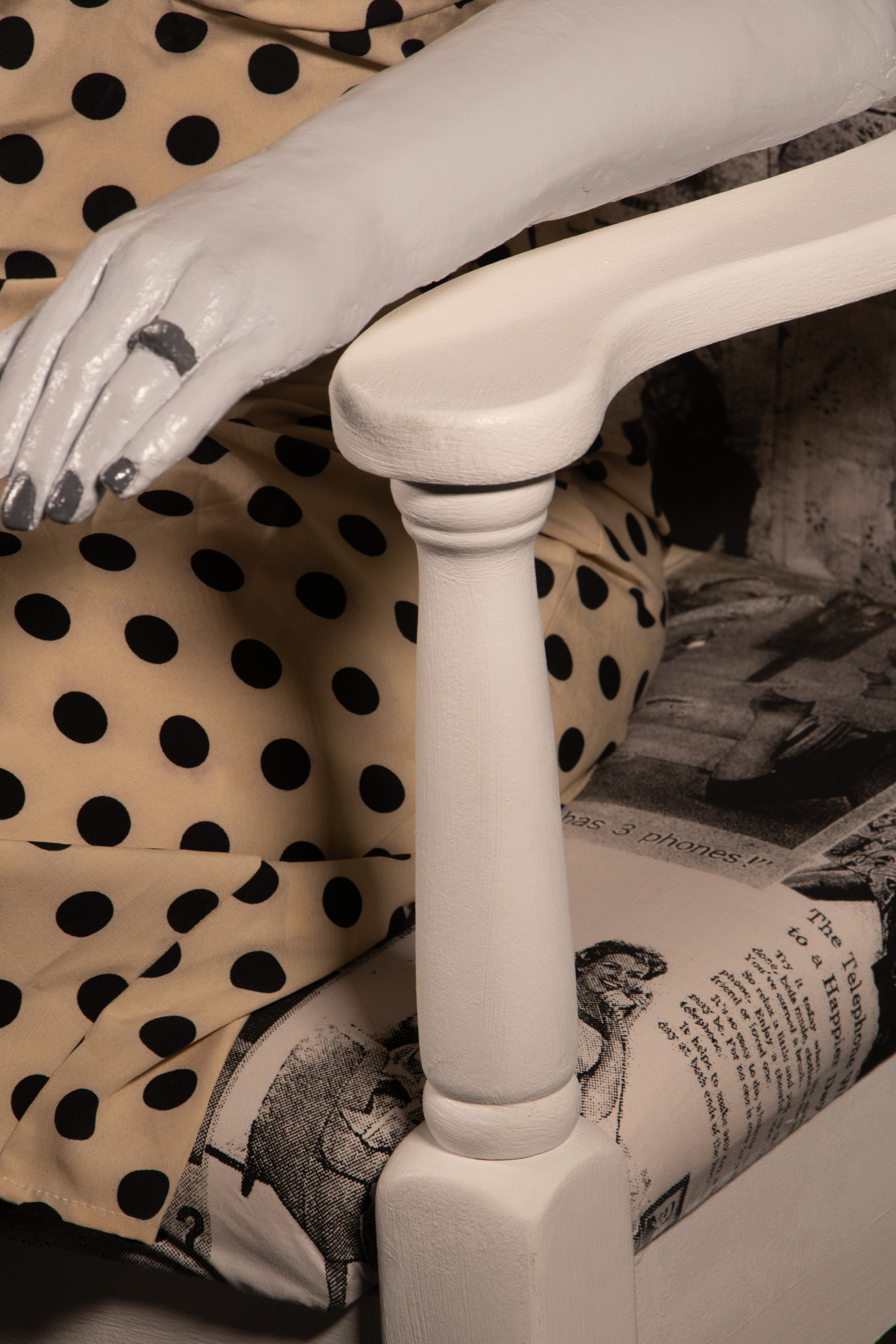 Stoneware, wood, cotton fabric, acrylic ink, and interior paint.
