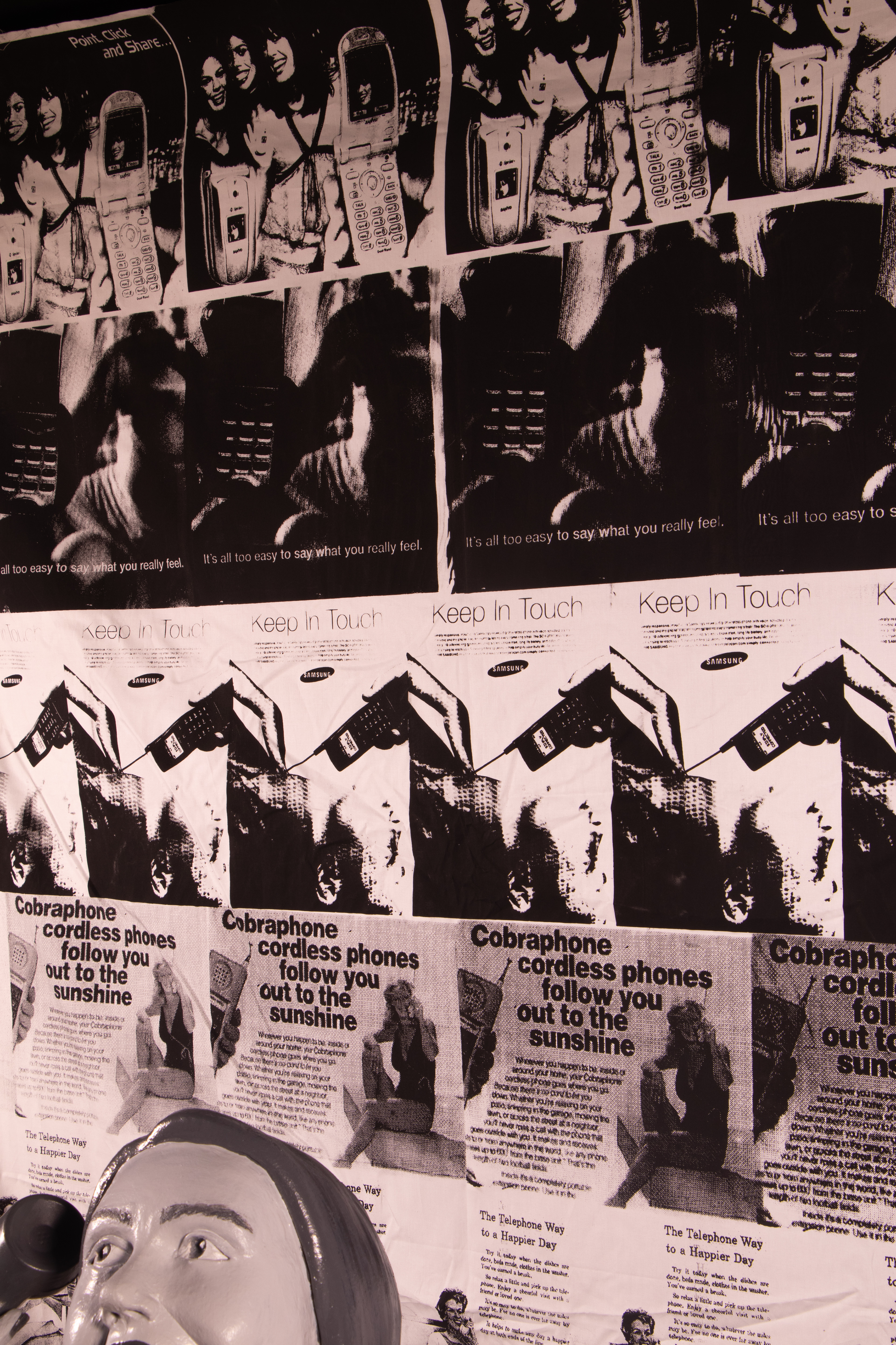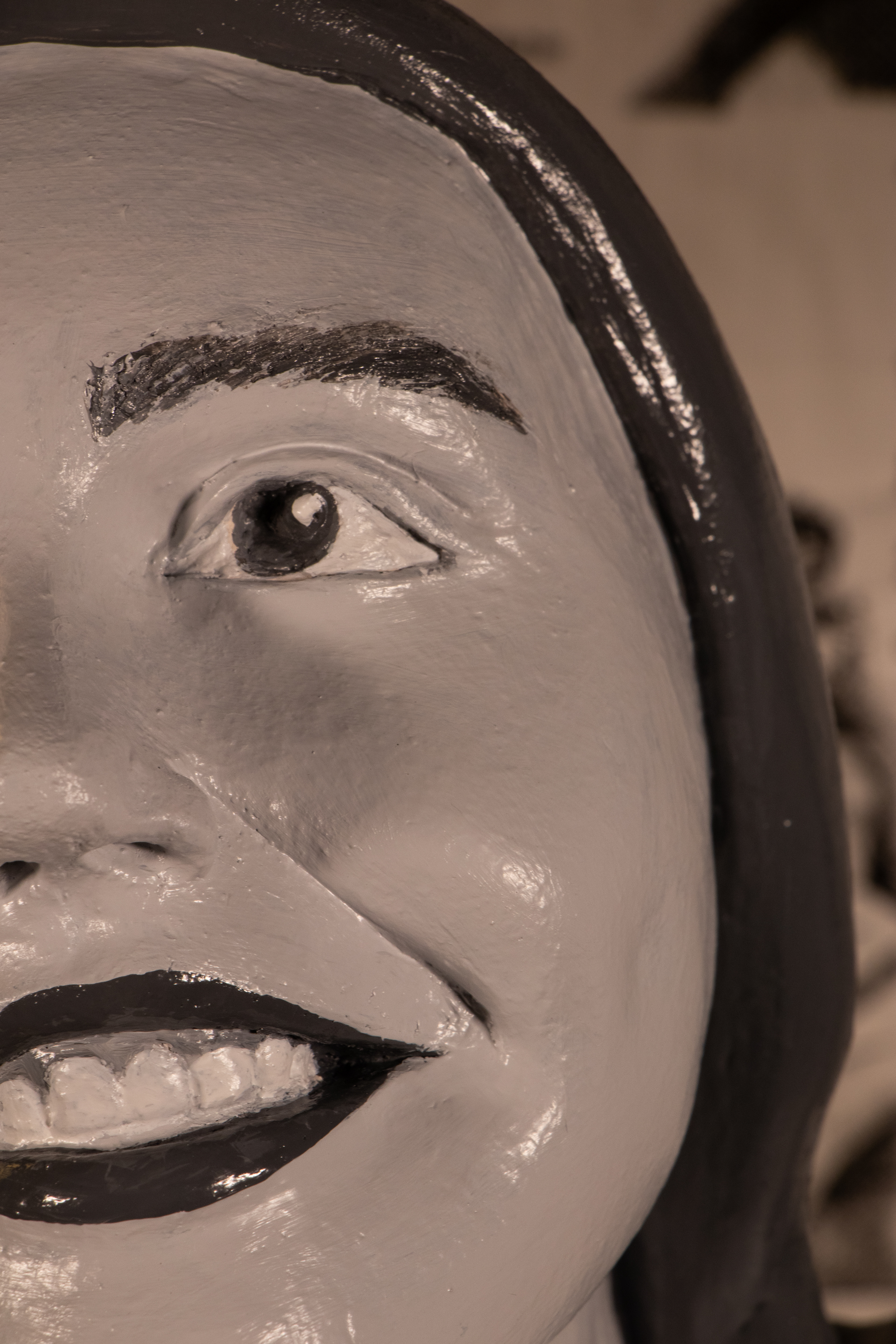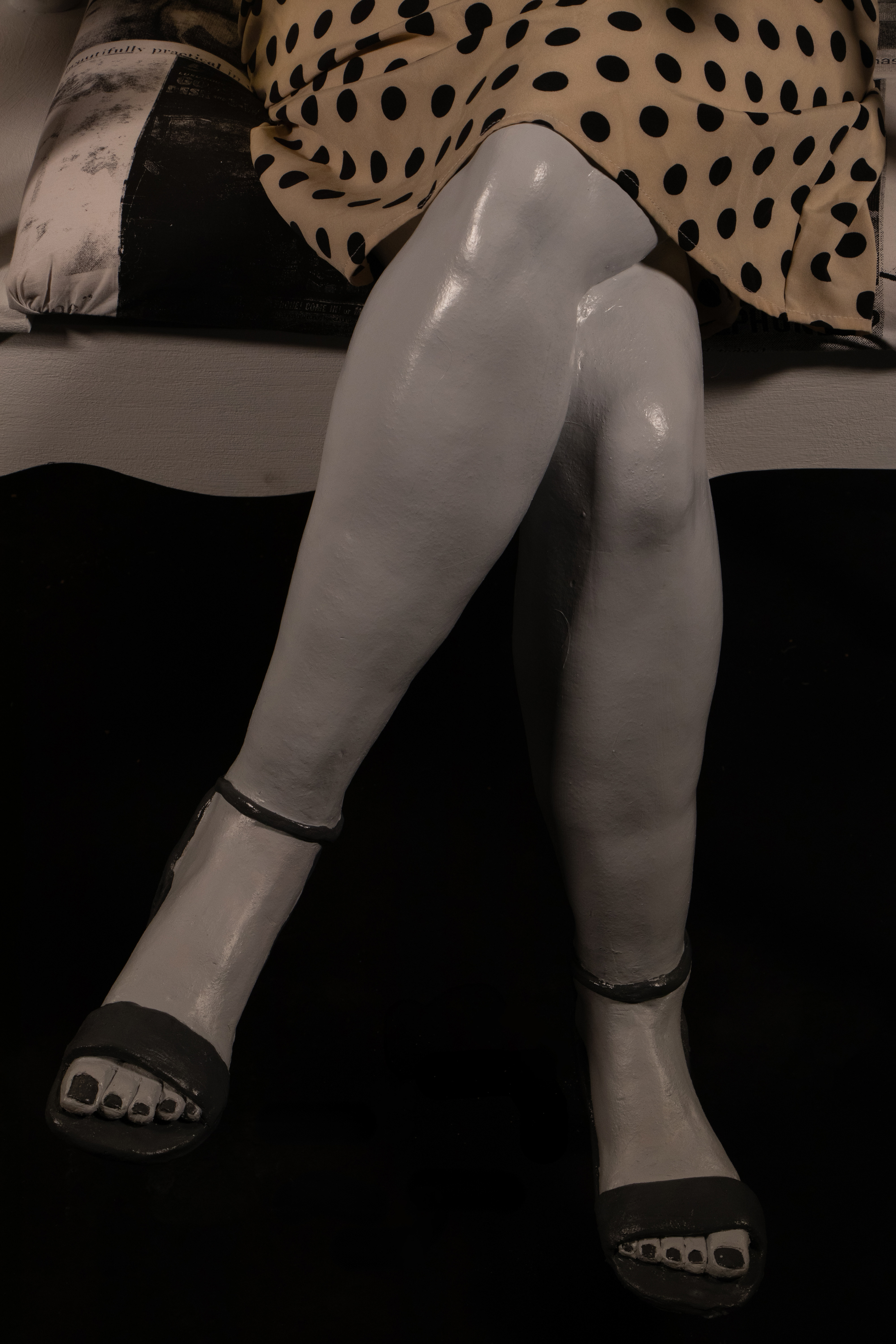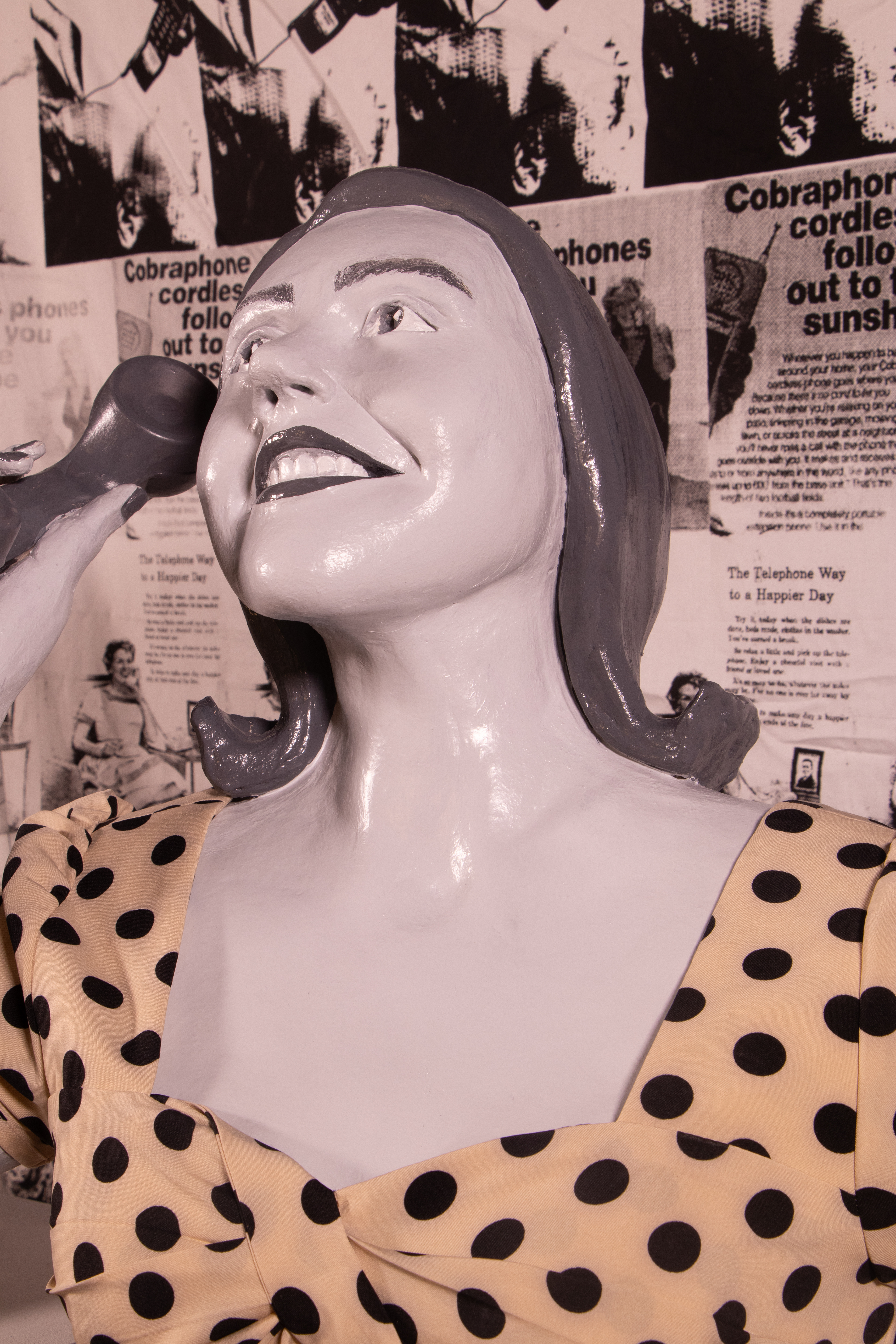 Stoneware, wood, cotton fabric, acrylic ink, and interior paint.